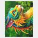 This fleece blanket has a dinosaur pictured on it.