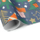 Dinosaur Christmas Party Blue Wrapping Paper
