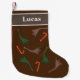Perfect! Exactly what I ordered! I uploaded a picture of my blue chow, and the screen print was incredible. the back side of the stocking was the red and black checkered print. my puppy's name was also printed on the cuff of the stocking. PERFECT! Highly recommend this product! My puppy's name was screen printed onto the cuff of the stocking, the font was perfect!
