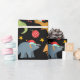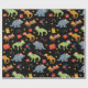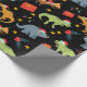 Dinosaur Christmas Santa Hat Pattern, Black Wrapping Paper