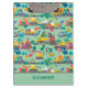 Dinosaur Construction Kids Personalized Pattern. Adorable dinosaurs doing roadwork on a green background.