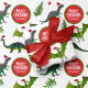 Dinosaurs Custom Name Christmas Wrapping Paper features photography of little toy dinosaurs in red Santa hats with the saying "Merry Christmas". Personalize it with your child's name inside of the red circle! A fun, festive Christmas giftwrap for little dinosaur lovers!