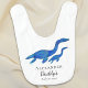 Add a splash of prehistoric dino fun to your little one’s mealtime with this bold and playful Personalized dinosaur Plesiosaurus Dad and Baby boy Bib, featuring original artwork by artist Catherine Sweetman. A fun dinosaur gift for new dads and boy baby gifts or for everyday fun at mealtimes. Designed in a vibrant, modern art vibrant blue a fresh and fun alternative to traditional pastels this eye-catching bib showcases a cheerful plesiosaurus daddy and baby dino illustration that’s perfect for dino-loving families. Customized with your baby boys name and the sweet phrase “Daddy’s Babysaurus [Name]”, it makes a thoughtful and unique gift for boys that love dinosaurs for birthdays, baby showers, or everyday cuteness. The colorful, contemporary design brings a fun twist to baby essentials and is sure to turn heads wherever you go.