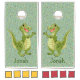 Dinosaur Design Cornhole Set with customizable background color and personalization.