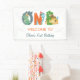 Modern First Birthday Party Dinosaur Welcome banner. Design features number one typography script and dinosaur icons. Personalize with a name.