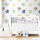 Cute wallpaper for a boys' room featuring colorful doodle dinosaur footprint on the white background. Perfect for boy room, nursery or playroom, for all the dinosaur lovers - Kate Eden Art