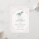 Celebrate your little girl’s fourth birthday with this elegant dinosaur invitation featuring a watercolor green dino wearing a pink bow and party hat on a soft pink striped background. Sweet and modern design perfect for dino loving girls. Customize all wording for your child’s special day.