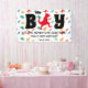 We create this fun, fresh and colorful banner for baby/kid birthday party with dinosaur theme pattern and a big T-rex in the center, change the text, the message, and the date. Enjoy a jurassic wild party!