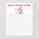 Cute pink dinosaur theme baby shower "baby name game" card featuring illustration of a pink stegosaurus hatching out of an egg. The texts are editable. Perfect game to play during the shower. It asks guests to write down baby names that starts with each alphabets. Whoever finishes all alphabets first wins!