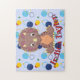 Cute Dinosaur jigsaw puzzle for kids with a circles pattern background. Personalize with his name to make this a fun gift for any child!