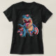 Dinosaur at the ready in an American flag cape and stylish glasses, ready to celebrate the 4th of July.