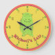 Cute dinosaur (or dragon!) in bright green against bright yellow background with soft red accents and child's name. Whimsical black numbers add a cute accent. Fun for a kid's bedroom, playroom or a schoolroom.
