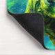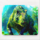 This mousepad has a green dinosaur on it.