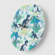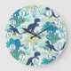 Dinosaur Navy Blue Green Teal Wall Clock
