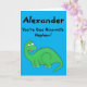 Personalize this card with your nephew's name! This funny dinosaur birthday card is perfect for your nephew! The inside is blank so you can write your own heartfelt message!