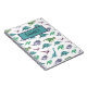 A notebook with a dinosaur-themed cover design. The cover illustration features several species of dinosaur including a T-Rex, a Triceratops, a Brontosaurus, a Stegosaurus, and a Pterodactyl on a white background. The notebook can be personalized with a child's name. Ideal as a birthday or Christmas gift for kids who love dinosaurs.