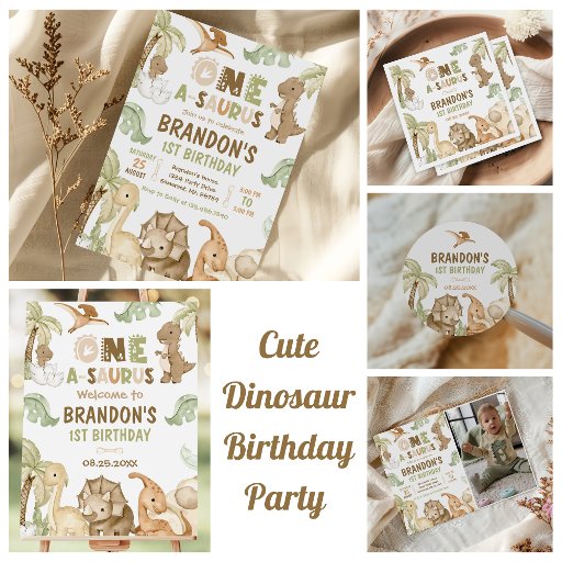 Dinosaur One-A-Saurus 1st Birthday Party Photo Thank You Card