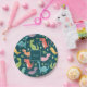 Add a custom Jurassic touch to the birthday party of your little kid with this monogrammed dinosaur paper plate. Paper plate has a pattern of colorful dinosaurs on a dark blue background and your little one's first name and monogram.