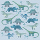Lots of blue dinosaurs, Tyrannosaurus Rex, Spinosaurus, Stegosaurus, Diplodocus and Triceratops.