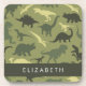 Dinosaur Pattern, Dinosaur Silhouette, Your Name Beverage Coaster
