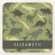 Dinosaur Pattern, Dinosaur Silhouette, Your Name Square Paper Coaster