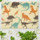 Dinosaur Pattern Silhouette Outlined Cutouts in different shades of deep orange, blue, brown, earth-toned. Great for boys or any child. Made in vector so it's possible for you to change the colors of the dinosaurs. Archaeology Lover.