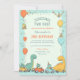A playful and colorful dinosaur birthday design featuring cute dinos driving race cars, balloons, and party decorations. Perfect for a fun-filled second birthday celebration with a dino racing theme.