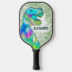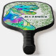 Colorful Dinosaur T rex roar personalized Jurassic jungle pickleball bat, ideal for boys and adults that love dinos. Easy to use templates for personalized child’s name. Original artwork by artist Catherine Sweetman