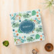 Dinosaur theme kids back to school 3 ring binder features a pattern of cute Tyrannosaurus (T rex), Triceratops, tropical monstera leaves, palm trees, volcano, bones, and "Roar!" text on a blue background. Personalize the front cover and spine with a name, class subject, year or other text of your choice. Original artwork KL Stock.