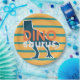 Colorful dinosaur cartoon silhouette, T-rex jurassic world birthday party supplies for kids who love dinos. Paper play for dinosaur party, yellow and blue stripes background