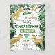 Ready for a cool dinosaur theme birthday party? This design features a watercolor of colorful dinosaurs, wild greenery, watercolor details, and gold dinosaur silhouettes with stomping feet, with modern "Born to be wild" and "Stomp, chomp & roar" typography. All text is editable on this birthday budget-friendly postcard! This design is for any age, gender-neutral, for 1st and 2nd birthdays, and older kids. Find matching items in my shop.