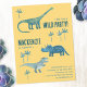 Time for a wild birthday party! A fun bunch of adorable dinosaurs on a yellow background, ready to customize with your child's name, age and party details. Great for any age child, boy or girl. The back is blank for your own message. Original art by Nic Squirrell.