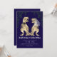 Funny Dinosaur navy blue and White Jurassic Wedding Invitation T-Rex Bride and Groom | Modern Jungle Theme with QR Code RSVP