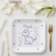 Happy birthday dinosaur theme square paper plate. Perfect for birthday cake, party treats, and kids’ table setups, this square design features a cute blue line dinosaur with balloons and stars for a fun, festive look. The square shape gives it a modern feel while keeping the playful vibe that kids love. With its happy birthday banner and bright style, it’s a delightful way to add extra charm to any birthday celebration.