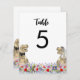 This fun dinosaur bride and groom in a watercolor colorful wildflower meadow table number card will delight your guests and bring dino fun to your dinosaur theme wedding. Make it easy for your wedding guests to find their place in Jurassic dinosaur wedding style. Just add the table number for each table using the simple templates to create a double sided table number chart. Original artwork by artist Catherine Sweetman