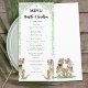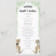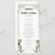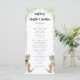 Fun dinosaur themed wedding menu with funny dinosaur bride and groom and watercolor botanical eucalyptus foliage. Easy to customize with the bride and grooms names, the wedding date and all the wedding menu food details in modern typography script. Fun T-Rex bride and groom dino illustrations in brown hues with watercolor greenery in green hues. Unique original dino artwork by artist Catherine Sweetman