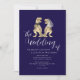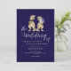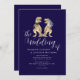 This unique navy blue and white wedding invitation showcases an original watercolor illustration by artist Catherine Sweetman of a T-Rex bride and groom ideal for couples who love dinosaurs, Jurassic themes, or non-traditional destination wedding celebrations. The stylish navy blue background contrasts beautifully with crisp white calligraphy script and clean modern typography, creating a look that’s romantic, stylish, and fun.