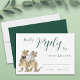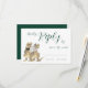 Dinosaur themed wedding reply enclosure card. Featuring a fun T-Rex bride and groom with dark green elegant modern script wedding RSVP card brings a unique and whimsical feel to your special day. Elegant calligraphy-style script and modern typography fun and easy to personalize, making it simple to match your wedding style. Designed by artist Catherine Sweetman, the watercolor art showcases a charming blend stylish design and dino-inspired love. Perfect for your wedding reception or rehearsal dinner, this RSVP card is part of a complete wedding suite that includes everything you’ll need to make your wedding journey as memorable as your love story.