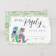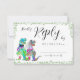 Colorful Botanical Dinosaur themed wedding reply enclosure card. Featuring a fun psychedelic T-Rex bride and groom with watercolor eucalyptus foliage, this card brings a unique and whimsical feel to your special day. The modern calligraphy-style typography is both fun and easy to personalize, making it simple to match your wedding style. Designed by the talented Catherine Sweetman, the watercolor art showcases a charming blend of botanicals and dino-inspired love. Perfect for your wedding reception or rehearsal dinner, this RSVP card is part of a complete wedding suite that includes everything you’ll need to make your wedding journey as memorable as your love story.