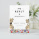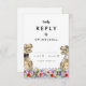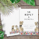 Bring fun and joy to your wedding day preparations with this Dinosaur themed wedding RSVP reply enclosure card with T-Rex bride and groom in a colorful prehistoric wildflower meadow. Modern whimsical typography calligraphy with easy to personalize templates. Unique Tyrannosaurus Rex bride and groom with watercolor summer floral art original artwork by artist Catherine Sweetman Ideal for the wedding day reception or rehearsal dinner. Matching wedding suite includes everything you will need on your fun wedding journey