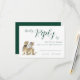 Dinosaur themed wedding reply enclosure card. Featuring a fun T-Rex bride and groom with dark green elegant modern script wedding RSVP card brings a unique and whimsical feel to your special day. Elegant calligraphy-style script and modern typography fun and easy to personalize, making it simple to match your wedding style. Designed by artist Catherine Sweetman, the watercolor art showcases a charming blend stylish design and dino-inspired love. Perfect for your wedding reception or rehearsal dinner, this RSVP card is part of a complete wedding suite that includes everything you’ll need to make your wedding journey as memorable as your love story.
