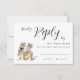 Dinosaur themed wedding reply enclosure card. Featuring a fun T-Rex bride and groom with elegant modern script wedding RSVP card brings a unique and whimsical feel to your special day. Elegant calligraphy-style script and modern typography fun and easy to personalize, making it simple to match your wedding style. Designed by artist Catherine Sweetman, the watercolor art showcases a charming blend stylish design and dino-inspired love. Perfect for your wedding reception or rehearsal dinner, this RSVP card is part of a complete wedding suite that includes everything you’ll need to make your wedding journey as memorable as your love story.