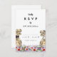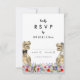 Bring fun and joy to your wedding day preparations with this Dinosaur themed wedding RSVP enclosure card with T-Rex bride and groom in a colorful prehistoric wildflower meadow. Modern whimsical typography calligraphy with easy to personalize templates. Unique Tyrannosaurus Rex bride and groom with watercolor summer floral art original artwork by artist Catherine Sweetman Ideal for the wedding day reception or rehearsal dinner. Matching wedding suite includes everything you will need on your fun wedding journey