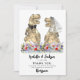 A funny dinosaur theme wedding Thank you for wedding guests for being roarsome with this funny wildflower dinosaur bride and groom wedding thank you card. Fun T-Rex bride and groom in a romantic wildflower meadow and modern whimsical typography with easy to use templates. Original dino artwork and foliage by artist Catherine Sweetman