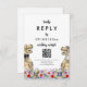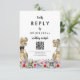 Bring fun and joy to your wedding day preparations with this Dinosaur themed wedding RSVP online QR Code website reply card with T-Rex bride and groom in a colorful prehistoric wildflower meadow. Modern whimsical typography calligraphy with easy to personalize templates so you can add the wedding website QR code and browser web address and helpful guest instructions. Unique Tyrannosaurus Rex bride and groom with watercolor summer floral art original artwork by artist Catherine Sweetman Ideal for the wedding day reception or rehearsal dinner. Matching wedding suite includes everything you will need on your fun wedding journey