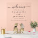 This customizable wedding welcome sign features stylish modern typography and elegant script fonts, making it easy to personalize with the bride and groom’s names, the wedding date and your own personal welcome. Ideal for outdoor Jurassic destination weddings or summer ceremonies, this fun wedding welcome sign sets the tone for a prehistoric roaring good time celebrating the happy couple.