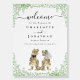 This customizable wedding welcome sign features stylish modern typography and elegant script fonts, making it easy to personalize with the bride and groom’s names, the wedding date and your own personal welcome. Ideal for outdoor Jurassic destination weddings or summer ceremonies, this fun wedding welcome sign sets the tone for a prehistoric roaring good time celebrating the happy couple.