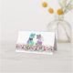 Bring dinosaur wedding fun to your table settings with these unique psychedelic Jurassic T-Rex bride and groom in a prehistoric wildflower meadow table place cards. Modern whimsical typography with room for your handwritten guests name and table number. Unique brown and green Tyrannosaurus Rex bride and groom with watercolor wildflowers in blue purple pink red orange yellow and burgundy hues original artwork by artist Catherine Sweetman Ideal for the wedding day reception or rehearsal dinner. Matching wedding suite includes everything you will need on your fun wedding journey