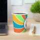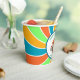 Adorable Personalized Boy's Birthday Party paper cups. Cute dinosaur theme in blue, orange and green. Cute cartoon dinosaurs holding balloons and birthday cake. Add name and age in the personalize area.