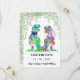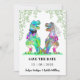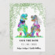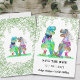 Delight you guests with this funny dinosaur themed wedding T Rex bride and groom with woodland foliage save the date. Easy to customize with the bride and grooms names and the wedding date. Colorful watercolor T Rex bride and groom illustrations with modern typography. Unique original artwork by artist Catherine Sweetman